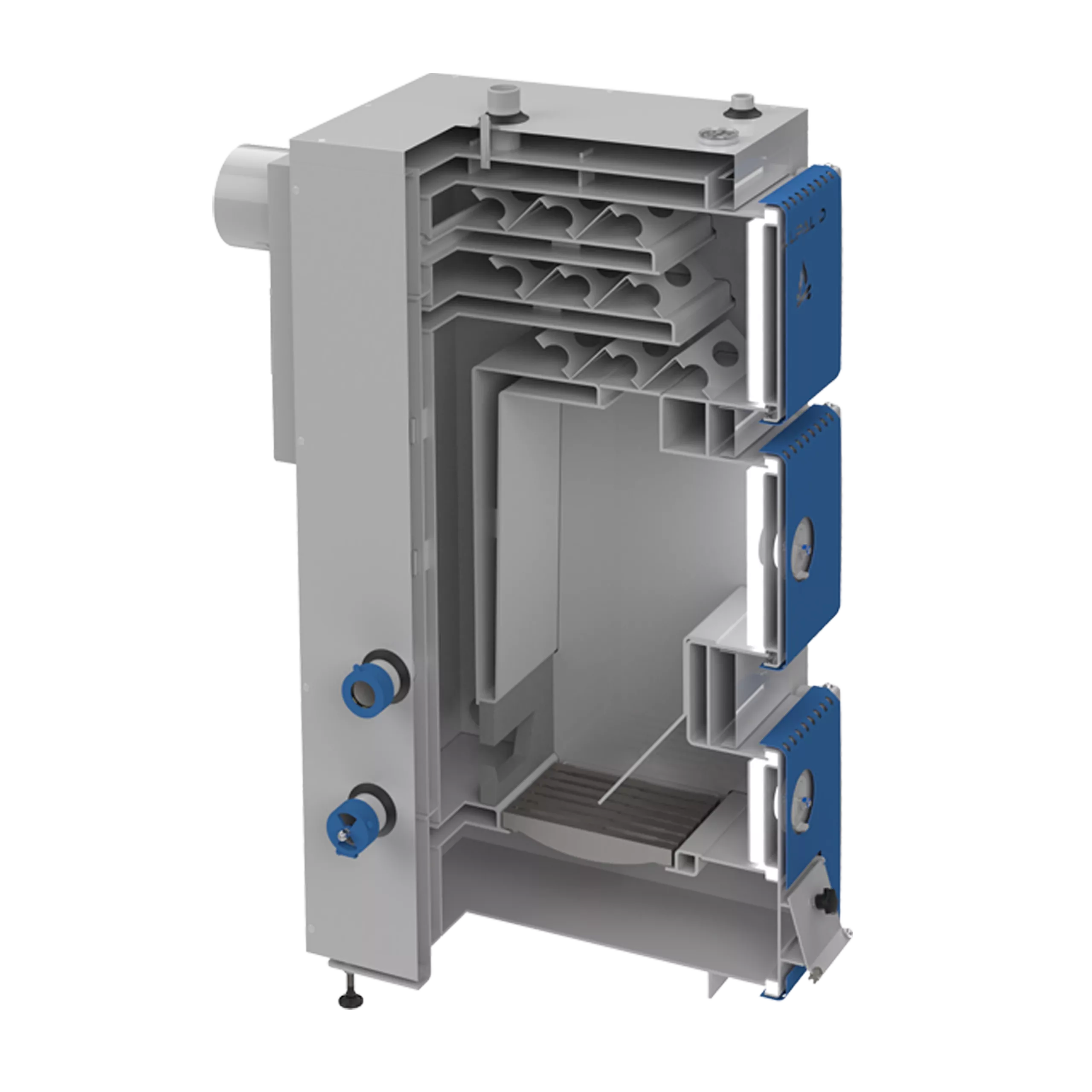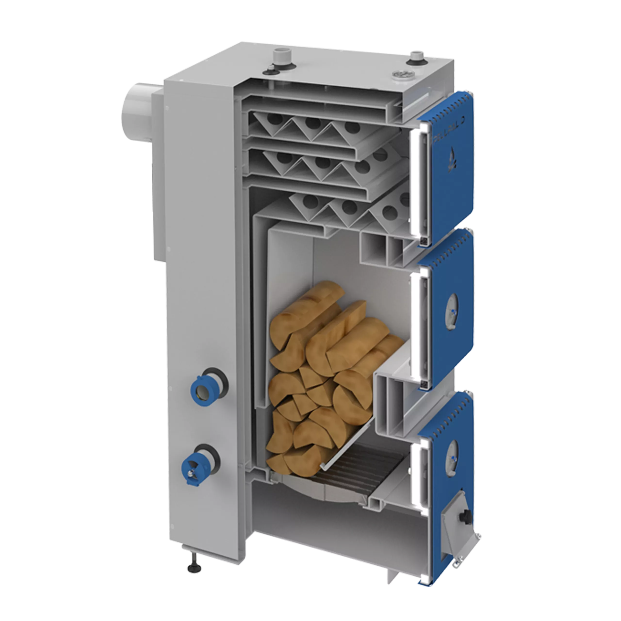 Korpus kotła i płaszcze zewnętrzne wykonane są z atestowanej blachy kotłowej P265GH o grubości 5 mm. Poszczególne elementy kotła wycinane są laserowo co zapewnia maksymalną dokładność i 100 % powtarzalność poszczególnych elementów, z których składa się dane urządzenie grzewcze.